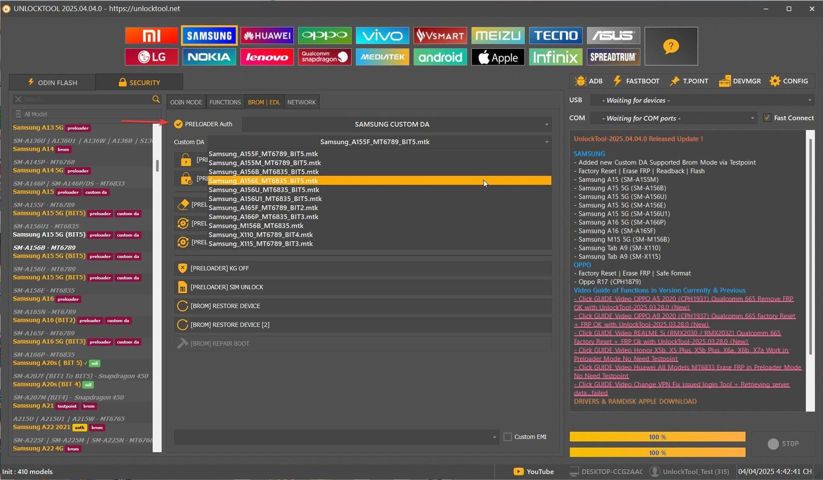 • FRP Bypass: Removes Factory Reset Protection, allowing access to devices locked due to previous owner’s Google account.